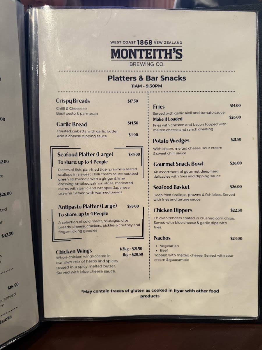 Monteiths Brewery Bar is the perfect spot to unwind, indulge in great food, and enjoy lively company. You won't leave disappointed!